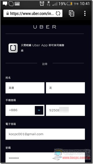 編按: UBer 與阿達合作,只要註冊 UBer 時推薦碼輸入「kocpc」或使用阿達專用推薦連結(請點我) 並完成第一次搭車,